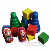 методическое руководство, бланк фиксации результатов, желобок, три коробочки четырехугольной формы, три шарика одинакового цвета, две матрешки, две пирамидки, восемь цветных кубиков, тележка (машинка), две тесемки, шарик-погремушка, набор счетных палочек, набор цветных фломастеров, набор парных картинок, набор разрезных картинок, карандаш, фирменная сумка.