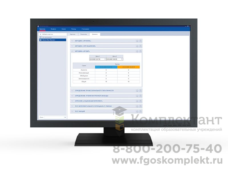 Комплект:СD с программой тестирования и обработки результатов; руководство пользователя.