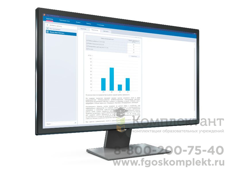 Комплект: СD с программой тестирования и обработки результатов; комплект карточек; авторское методическое руководство; руководство пользователя.