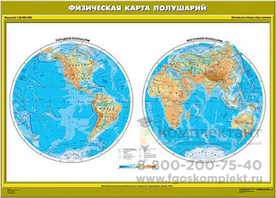 Учебн. карта Физическая карта полушарий. Начальная школа (100*140)