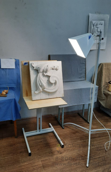 Натюрмортная стойка, регулируемая по высоте (от 420 до 850мм) одним винтом, удобна для расстановки композиции в классах, где необходимо обеспечить обзор с разных углов зрения для учащихся, работающих за мольбертами.