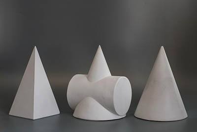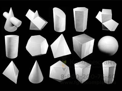 Геометрические тела изготовлены из гипса, дополнительно не окрашены.