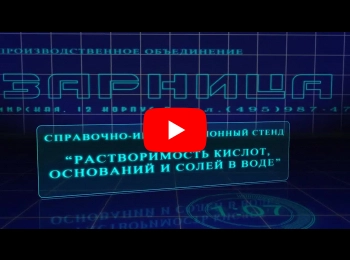 Справочно-информационный стенд представляет собой панель с раздельной световой индикацией, на которой размещена таблица растворимости кислот, оснований и солей в воде.