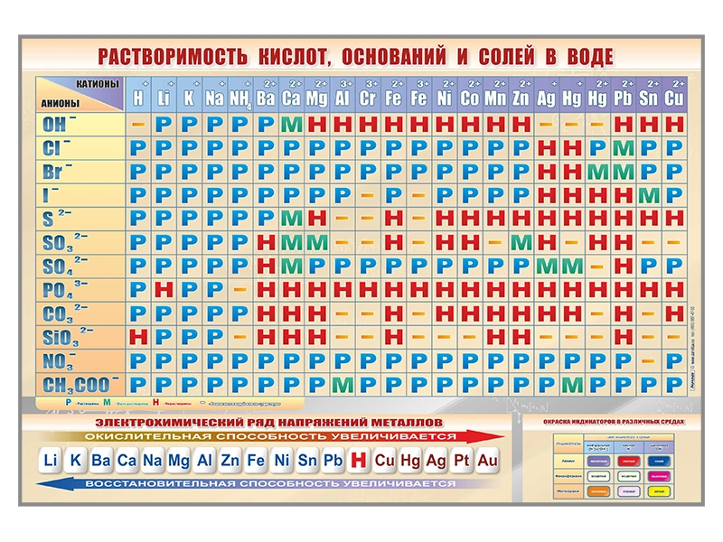 Стенд - таблица "Растворимость кислот, оснований и солей в воде"