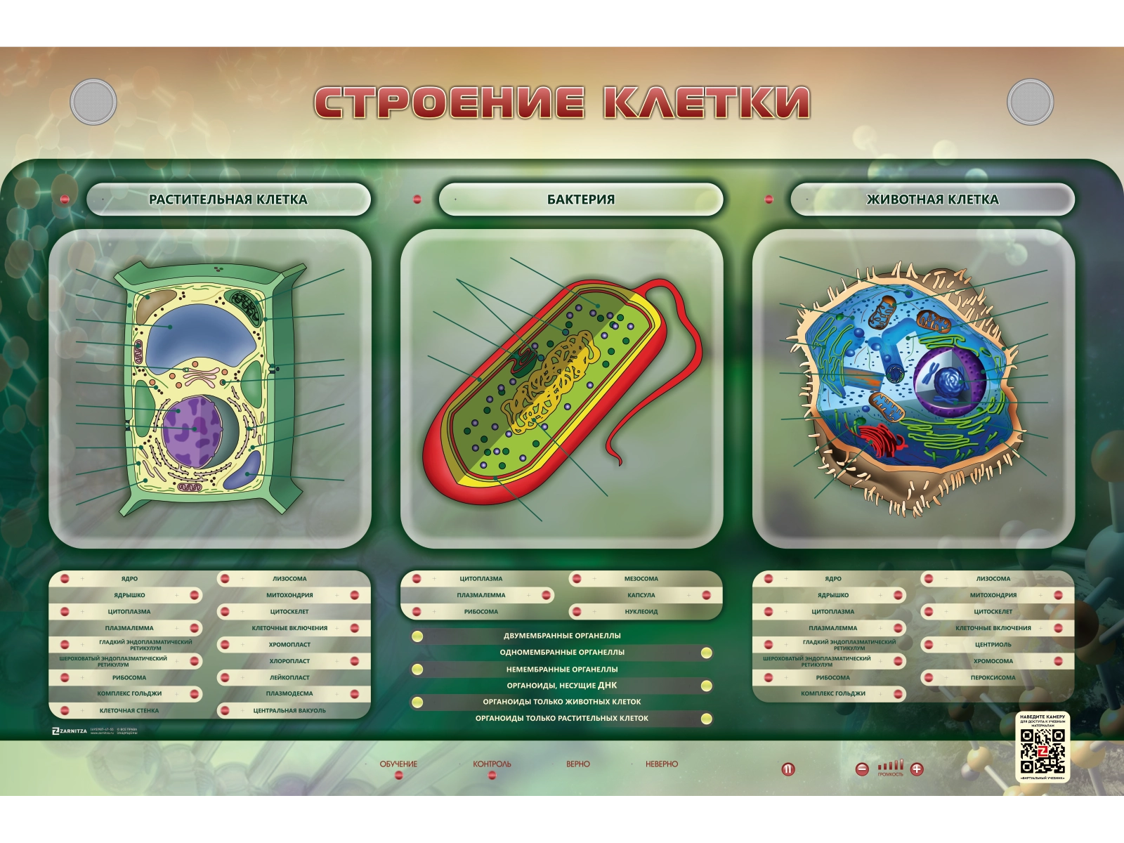 Электрифицированный стенд предназначен для изучения строения клетки и проведения интерактивного тестирования по данной теме на уроках биологии (естественно-научных предметов).