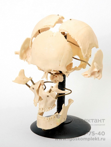 Модель «Череп с разрозненными костями, смонтированный на подставке» выпускается как демонстрационный материал при изучении строения черепа человека в средних и высших образовательных учреждениях. Модель представляет собой разрозненные кости черепа человека изготовленные из пластмассы в натуральную величину и закрепленные на подставке и имеет размеры 26х23х32 см. КОМПЛЕКТНОСТЬ - модель черепа человека – 1 шт.; - руководство по использованию, паспорт – 1шт.; - коробка упаковочная – 1 шт. '> Модель «Череп с разрозненными костями, смонтированный на подставке» выпускается как демонстрационный материал при изучении строения черепа человека в средних и высших образовательных учреждениях. Модель представляет собой разрозненные кости черепа человека изготовленные из пластмассы в натуральную величину и закрепленные на подставке и имеет размеры 26х23х32 см. КОМПЛЕКТНОСТЬ - модель черепа человека – 1 шт.; - руководство по использованию, паспорт – 1шт.; - коробка упаковочная – 1 шт.