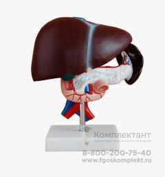 Демонстрационное учебное пособие - модель органов брюшной полости: печень, селезёнка, поджелудочная железа. Разбается на 3 части. Материал - пластик. На подставке.