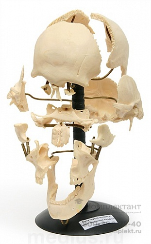 Модель «Кости черепа человека, смонтированные на одной подставке» выпускается как демонстрационный материал при изучении строения черепа человека в средних и высших образовательных учреждениях.