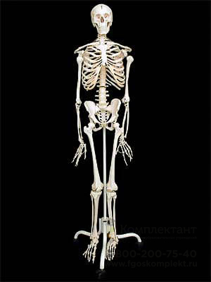 Модель является разборной (можно снимать конечности скелета и крышку черепа). В состав модели включены следующие части: череп, скелет туловища, верхние конечности, нижние конечности.