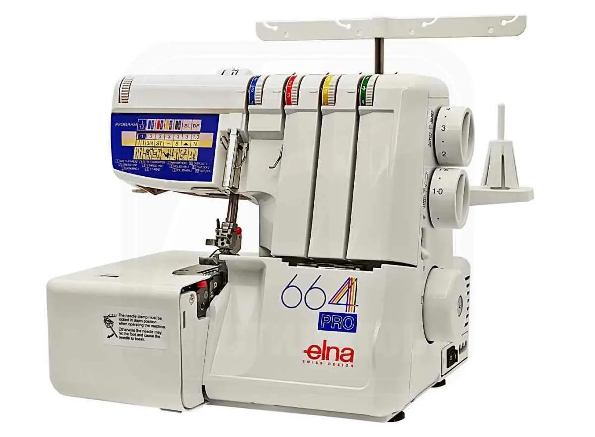 Удобное расположение функционирующих регуляторов и кнопок на корпусе делают оверлок Elna 664 PRO удобной в работе машиной. Кроме этого, на передней панели техники имеется специальная таблица, которая состоит из подсказок по настройке швов. Необычайно полезными аксессуарами, которые прилагаются в качестве комплектующих, являются пристегивающийся нитенаправитель, шкатулка для хранения аксессуаров, клипса для снятия натяжения, нитевдеватель, ключ и др.
