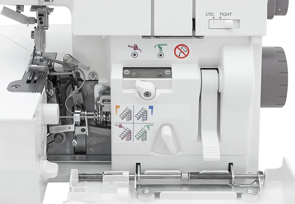 Компания Janome представляет своим клиентами очередную новинку - 4-x (3, 2-x) - ниточный оверлок AirThread 2000D Professional. Его главная особенность - уникальная система воздушной заправки петлителей. Вам всего лишь необходимо вставить нить в отверстие, которое соответствует нижнему или верхнему петлителю. И, после нажатия специального рычага, воздушный поток легко и быстро направляет нить по трубкам прямо в петлитель. Модель так же оснащена встроенным регулируемым нитевдевателем, который помогает без особых усилий заправить как левую, так и правую иглу. Эти процессы заметно сокращают время и упрощают процесс подготовки к шитью! При помощи Оверлока Janome AirThread 2000D Вы сможете выполнить все необходимые виды швов: обметочные, ролевые, Flatlock и другие. Регулируемая дифференциальная подача ткани обеспечивает идеальное продвижение любых материалов без растяжения и стягивания. Диапазон значений: 0,5 - 2. Помимо этого, Оверлок оснащен регулятором давления лапки на ткань, встроенным конвертером для 2-х ниточного шва. Для работы с объемными изделиями Оверлок имеет дополнительный подъем прижимной лапки. А для поддержания чистоты и порядка на Вашем рабочем месте - съемный мусоросборник для обрезков ткани.