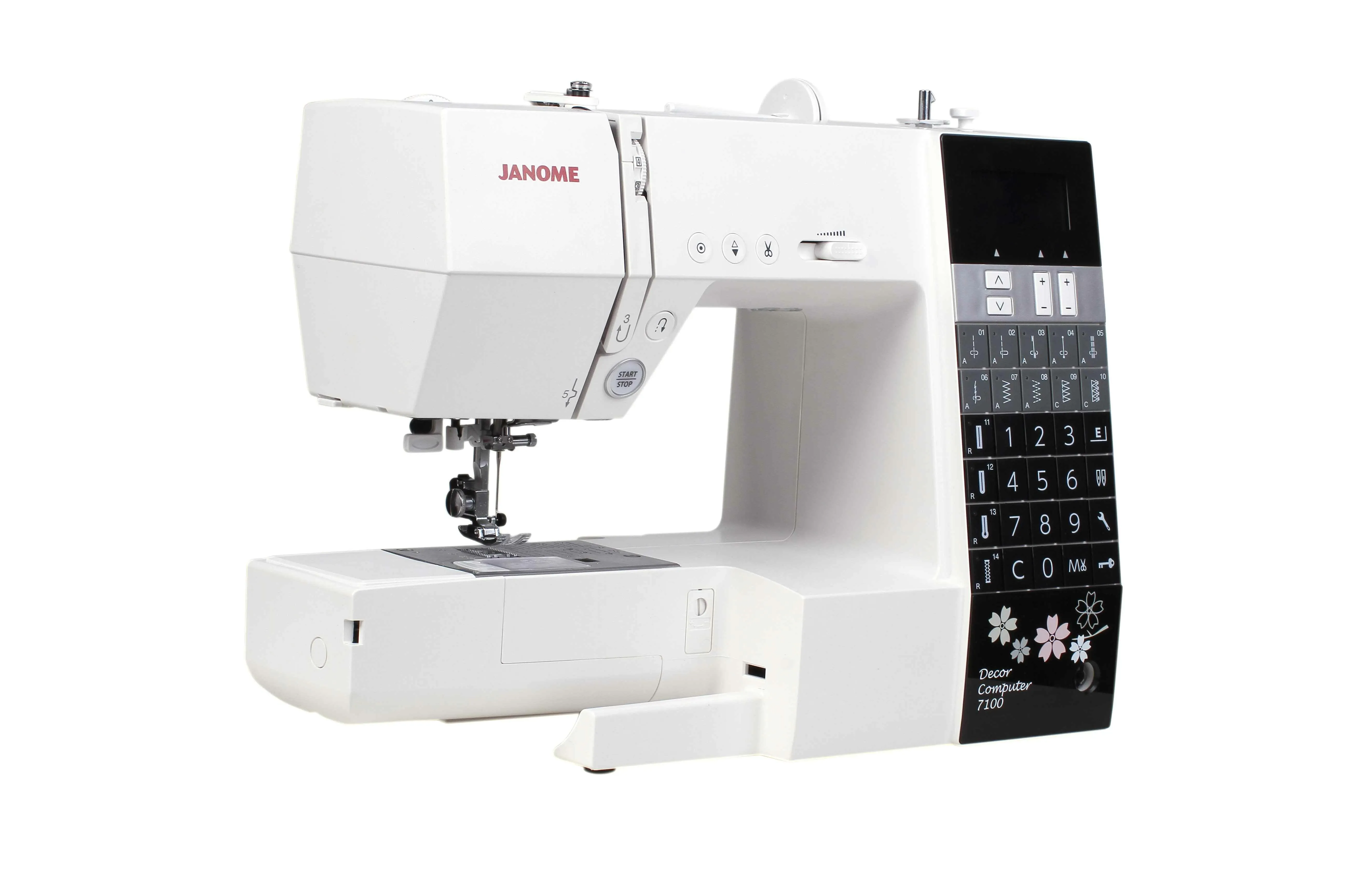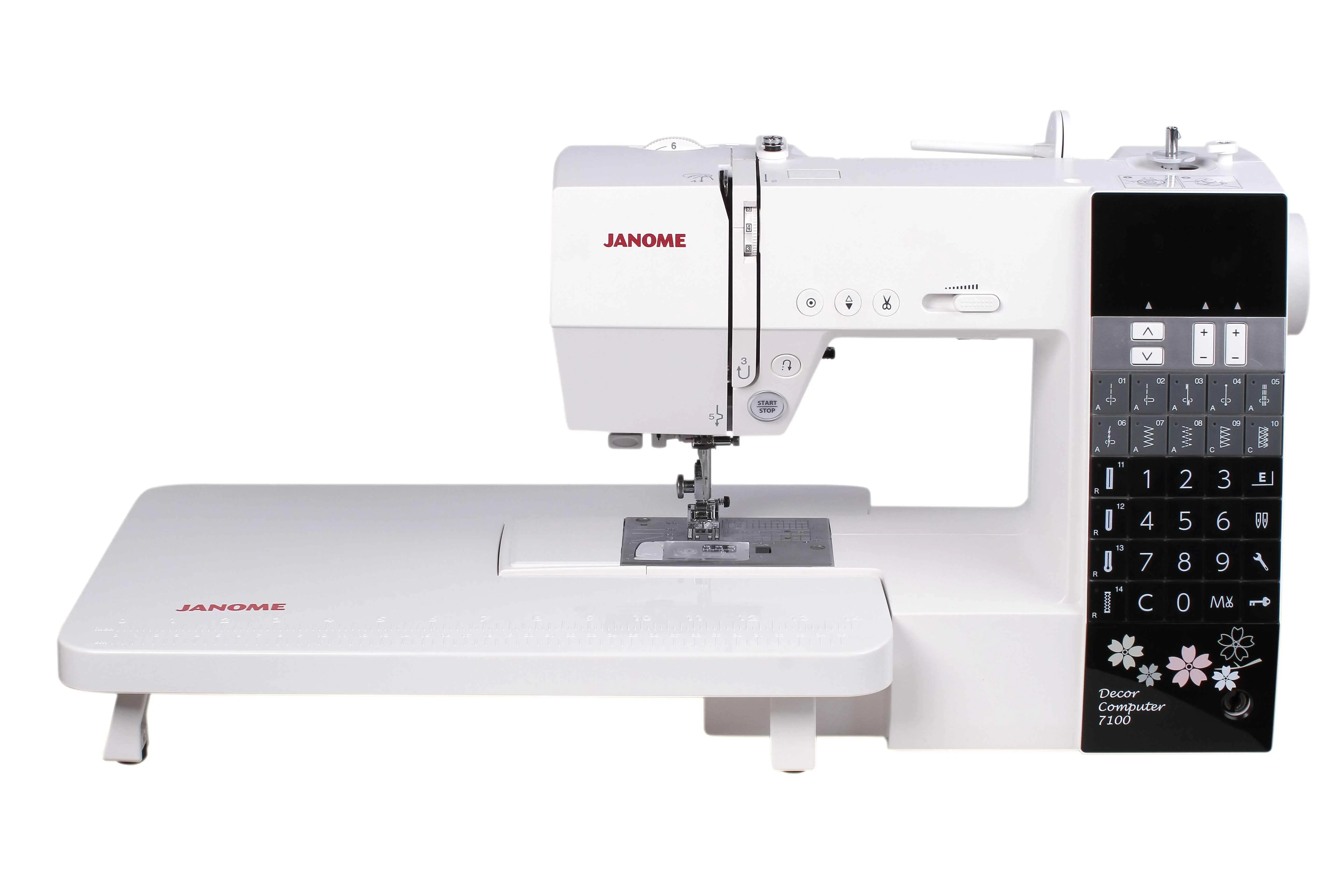 | Широкий диапазон функций Janome Decor Computer 7100 оснащена такими функциями, как точечная закрепка, кнопка позиционирования иглы, автоматическая обрезка нити. С помощью кнопки Старт/Стоп Вы сможете работать на машине без педали, а при помощи регулятора скорости плавно установить нужную скорость работы, вплоть до пошаговой. |