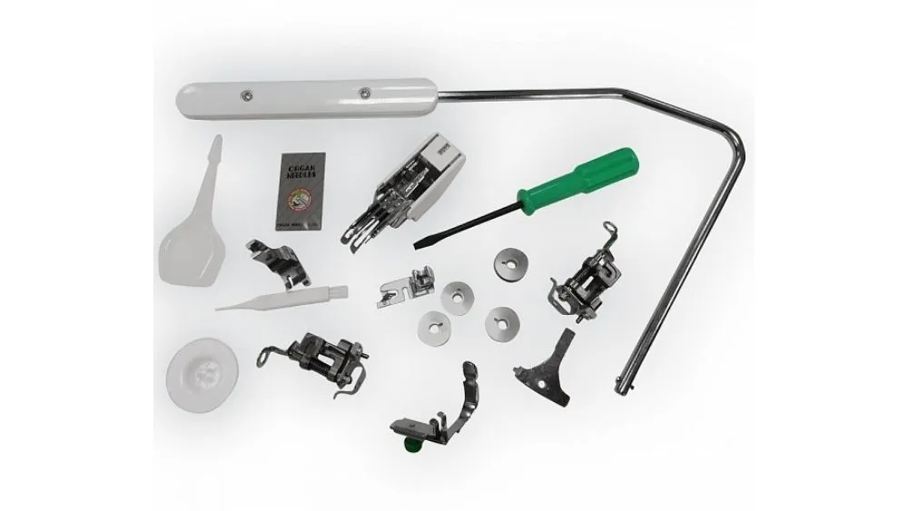 Лапки в комплекте | Лапка для подрубки; Лапка для молнии; Шагающая лапка; Лапка для тёжки 1/4" ; лапка для стёжки 1/5" |
