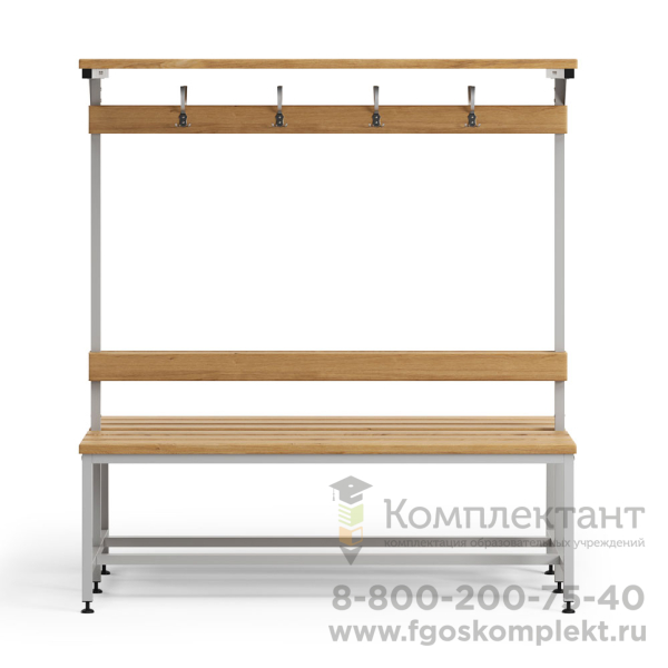 Очень прочная и долговечная двухсторонняя скамья со спинкой и вешалкой и полкой для шапок.