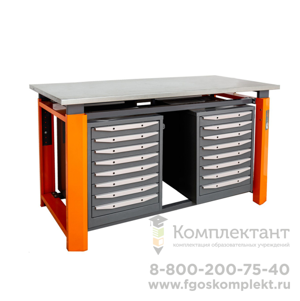 Высота столешницы верстака может регулироваться по желанию заказчика в диапазоне 924-1044 мм.