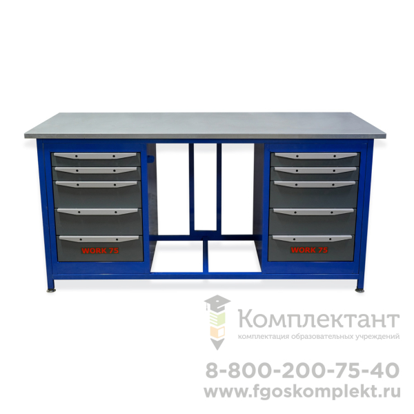 Столешница изготовлена из фанеры 24мм и закрыта стальным оцинкованным листом 1,2мм. Глубина столешницы 750мм. Максимальная распределенная нагрузка на столешницу до 350кг.