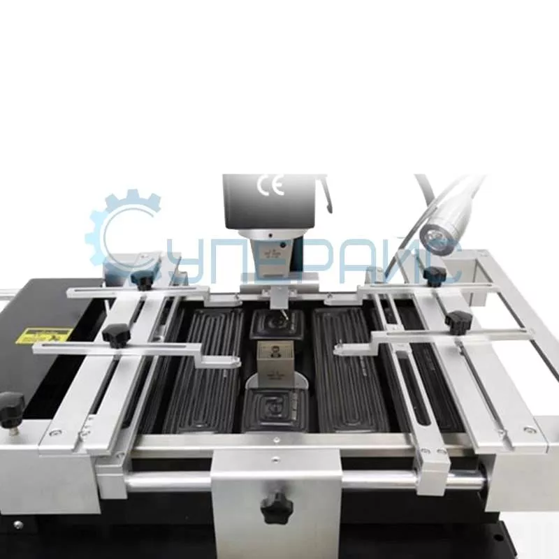Цифровая паяльная станция Dinghua с потребляемой мощностью до 4800 Ватт. Минимальный размер BGA чипов составляет 2 миллиметра, а максимальный – 80 миллиметров. Оба нагревателя термовоздушные (верхний и нижний), сам преднагреватель имеет инфракрасный элемент нагревателя.
