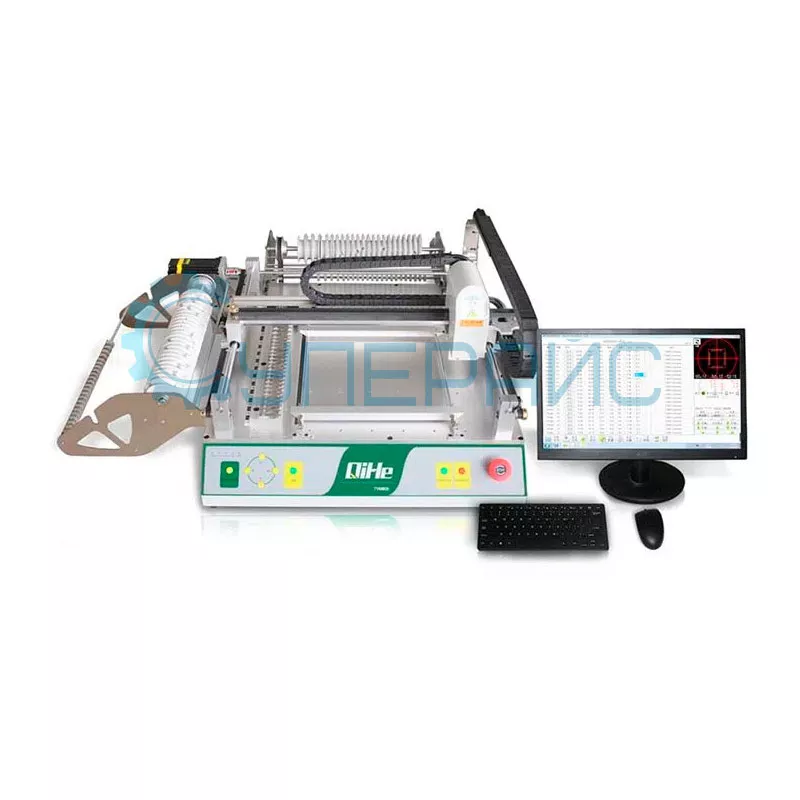 QIHE TVM802BX представляет собой установщик SMD c автоматическим режимом работы и встроенным промышленным компьютером. Станок располагает четырьмя монтажными головками при средней скорости работы 5500 или 6500 компонентов в час в зависимости от системы наблюдения.