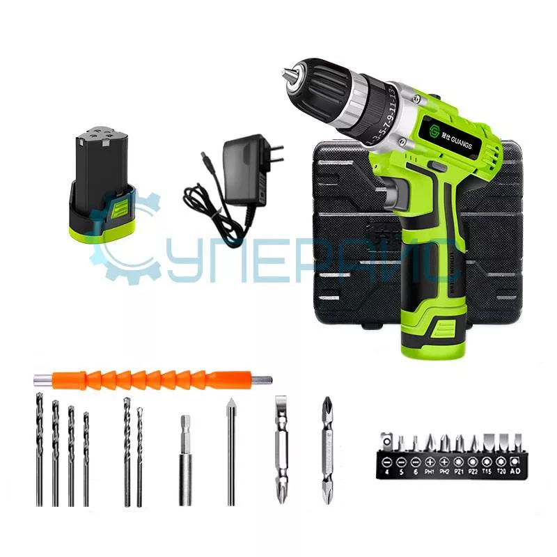 Дрель-шуруповерт Guanshi DZ12 с аккумулятором и кейсом