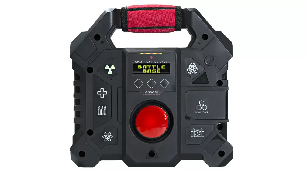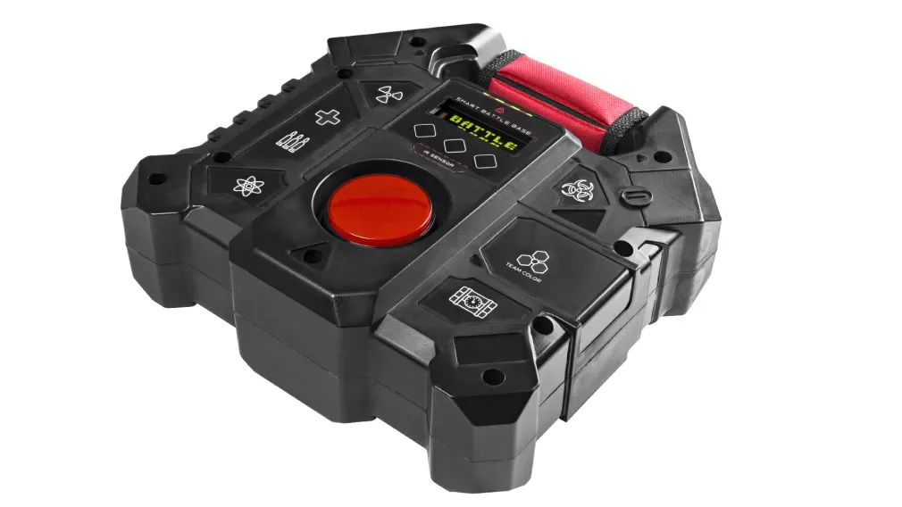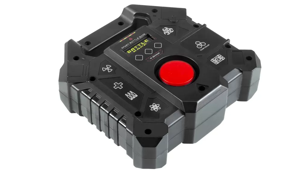 Устройство собственной разработки LASERWAR из линейки Smart.Подобно другим Smart-девайсам, «Боевая База» является универсальным устройством и может выполнять несколько сценарных функций.- Поддерживает три типа сценариев: «База поддержки» (доступно 9 типов импульсов: «Возрождение», «Медик», «Боезапас», «Скорострельность», «Двойное здоровье», «Стан игрока», «Разоружение», «Радиация», «Зомби»), «Блокпост» (выполняет функции контрольной точки), и «Бомба» (с тремя типами заряда: фугасный, нейтронный и биологический).- Корпус спроектирован с расчетом на жёсткие условия проката и имеет достаточный запас прочности. Он сделан из специального ударопрочного полимера с высоким показателем вязкости, имеет внутренние ребра жесткости, значительно повышающие прочность. Сложная форма внешней поверхности также работает на прочность. Толщина стенок придает устройству весомости и гарантирует, что при случайных столкновениях с препятствиями «Боевая База» не пострадает.- Конструкция базы позволяет закрепить ее на стену как стационарное устройство на респаунах и базах команд. Переносить её с места на место тоже удобно - для этого предусмотрена ручка.- За качество и громкость звука отвечает усилитель мощностью в 3 ватта. Динамик размещен в акустическом гнезде, которое улучшает звучание устройства.- Пользоваться «Базой» легко благодаря чёткому и яркому OLED-дисплею. Он отображает всю необходимую игрокам информацию, так что процесс настройки интуитивно понятен.- Семь ярких цветных пиктограмм на передней панели корпуса наглядно информируют о режиме работы устройства. Индикаторы «Здоровье», «Патроны», «Аномалия», «Радиация», «Биологическая опасность», «Взрывчатка» и «Цвет команды» хорошо читаются на большом расстоянии и интуитивно понятны.- Все электронные платы собираются на производстве методом автомонтажа, что исключает погрешности из-за человеческого фактора.