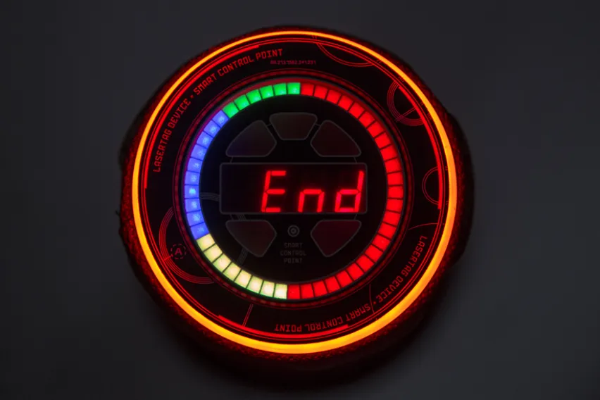 «Контрольная точка» для лазертага выполнена в стиле MILSIM. Она идеально вписывается в антураж любой военно-спортивной игры.Особенности устройства:- в программной части зашиты 3 основных сценария: «Захват контрольной точки», «Точка Battlefield», «Командный центр». Устройство может поддерживать союзников, восстанавливать здоровье и награждать ИК-импульсами противников;- на верхней части устройства расположена индикаторная панель с 80 светодиодами и ярким семисегментным дисплеем. Светодиоды делятся на 2 круга: внешний из 32 диодов отображает цвет команды, которая захватила девайс. Внутренний из 48 светодиодов отвечает за индикацию процесса захвата и удержания;- семисегментный дисплей отображает первостепенные для игроков данные: время раунда, время удержания точки;- элементы управления расположены в нижней части контрольной точки. Их немного: кнопка администратора, кнопка включения, разъем зарядки. Мы следуем принципу «включил и играй», поэтому девайс максимально прост в использовании;- фотодатчики девайса размещены так, чтобы захватить точку мог лишь игрок, который находится рядом с устройством. Рикошеты и случайные захваты остались в прошлом;- кнопки и разъемы расположены в отверстиях с люверсами. Кнопки обрамлены прочной тканью, которая сохранит аккуратный внешний вид даже после десятка игр. Основа для устойчивости закреплена металлическим кольцом;- за озвучку отвечает мощный динамик с усилителем класса D. Никаких шипений, искажений и пиканья - в обойме Умной контрольной точки 25 цифровых звуков;- вся электроника «Умной контрольной точки» находится под надежной защитой специального кожуха. При его разработке мы вдохновлялись «динамической защитой» танков. Кожух доступен в четырёх расцветках: черный, пиксель, мультикам и вудланд;- в комплекте идут удобные и прочные ремни для переноски. Игрокам не придется носить устройство под мышкой или придумывать самодельные ручки.Рекомендовано в прокат!