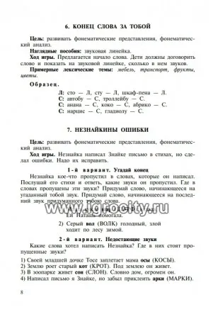 Практическим логопедам предложен разнообразный речевой материал, оформленный в виде игр и занимательных упражнений. Он может быть использован как на занятиях с младшими школьниками по устранению нарушений устной и письменной речи, так и при тестировании детей для определения соответствия уровня их рече вого развития возрастной норме. Представленная подборка пригодится и учителям начальных классов на уроках русского языка. Веселые стихи, скороговорки, анаграммы, палиндромы и др. помогут разнообразить урок, внести в него игровой элемент и моменты юмора, будут способствовать развитию у детей памяти, воображения, языкового чутья и худо жественного вкуса.