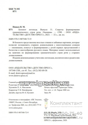 Блокнот логопеда. Выпуск 11 "Секреты формирования грамматического строя речи. Омонимы" Нищева Н.В.