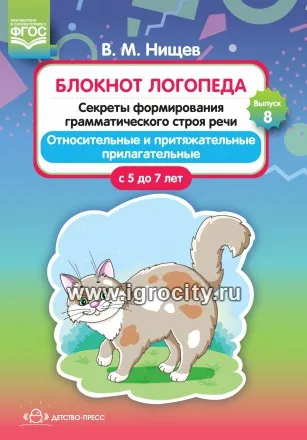 Блокнот логопеда 8 "Секреты формирования грамматического строя речи. Относительные и притяжательные прилагательные", Нищев В.М.