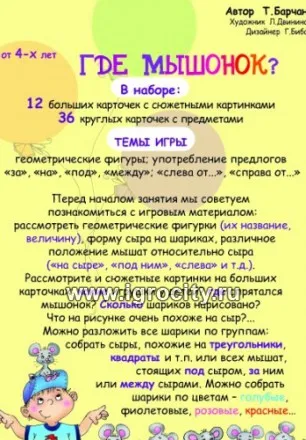Игра на ориентировку в пространстве "Где мышонок?", игротека Татьяны Барчан, арт.4021074