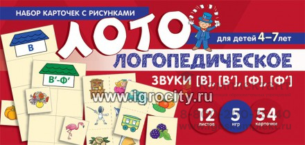 Логопедическое лото "Учим звуки [В], [В`], [Ф], [Ф`]", Бутырева О.А.