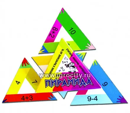 Развивающая настольная игра для детей, которая разработана в соответствии с требованиями ФГОС. Карточки треугольной формы дети выкладывают в одну большую пирамиду и закрепляют навыки счёта в пределах 10. Комплектность: карточки -36, правила - 1