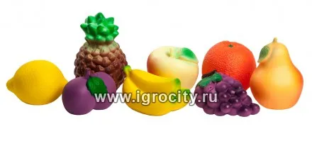 Набор из 8 фигурок фруктов, которые без труда можно найти на прилавках магазинов.Производитель оставляет за собой право, вносить изменения во внешний вид, в технические характеристики, комплектацию, цвет и упаковку изделия не ухудшающих качество изделия, без предварительного уведомления. Комплект: 8 игрушечных фруктов. Размер упаковки: 18 х 25 х 9 см. Размер фруктов: 6 х 7 х 9 см.