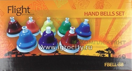 Набор из 8 музыкальных колокольчиков с кнопкой (диатонические колокольчики для детского сада), Flight, арт. Fbell-8B