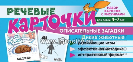 Набор карточек с рисунками "Речевые карточки. Описательные загадки. Дикие животные" для детей 4-7 лет, Танцюра С.Ю.