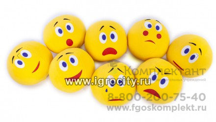 Материал: флис, фетр, наполнитель синтепух - 100% полиэстер. Что в комплекте 8 мячиков - мякишей с эмоциями: покой, удивление, радость, веселье, грусть (обида), злость, страх (испуг), смущение. мешок для хранения. Размер: диаметр мячиков - 15 см, мешок для хранения - 45 х 70 см.