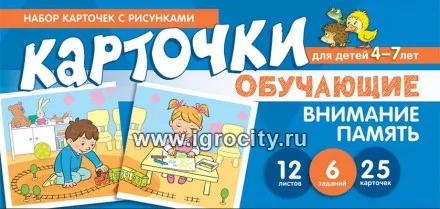 Обучающие карточки "Набор карточек с рисунками. Внимание, Память" для детей 4-7 лет