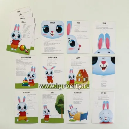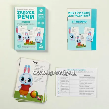 Для развития речи ребёнка мы приготовили 15 карточек-историй про зайчика Сеню. Он поможет изучить части тела, простые поведенческие навыки, эмоции, цвета и не только. Под каждой картинкой вы найдёте варианты беседы с ребёнком: какой вопрос можно задать малышу, и какой ответ ожидать. Как заниматься с карточками? Для игры с карточками выбирайте время, когда ребёнок и вы в хорошем настроении. Старайтесь, чтобы любое взаимодействие с ребёнком сопровождалось диалогом. Почаще задавайте вопросы и отвечайте на них сами в той же форме, в какой хотите услышать от ребёнка. Проговаривайте слова нараспев, выделяя ударный слог. В диалоге используйте выражения разной интонации. Под каждой картинкой вы найдёте варианты беседы с ребёнком: какой вопрос можно задать малышу, и какой ответ ожидать (он указан в скобках). Основой познавательных реакций ребёнка является реакция на новизну. Об этом стоит постоянно помнить. Если малыш изучил картинку, ему становится неинтересно. Заметили, что ребёнок не рассматривает картинку, значит, он уже получил всю нужную информацию. Разыгрывайте в реальной жизни ситуации, изображённые на картинке. Даже если ребёнок пока отвечает мычанием и одним звуком, произнесите вслед за ним полное слово. Так вы покажете, что понимаете его. Бонус! Чек-лист для родителей, который поможет оценить занятия и игры с ребёнком. Каждая страница направлена на изучение определённых слов и выражений. Записывайте свои наблюдения и отмечайте успехи малыша. Внутри вы найдёте: 15 карточек размером 105 × 148 мм (картон, 220 г), чек-лист для родителей, инструкцию для родителей.