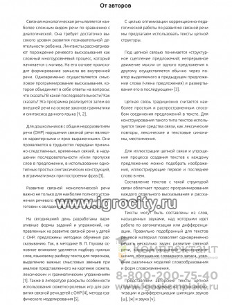 Комплект тетрадей для развития связной монологической речи детей дошкольного возраста предназначен для работы как в условиях дошкольного образовательного учреждения, так и в семье. В тетрадях представлены так называемые тексты цепной структуры и вопросы для бесед по ним. Тексты также предназначены для автоматизации правильного произношения сложных звуков русского языка (звуков позднего онтогенеза), поэтому после каждого рассказа представлены слова, произношение которых следует отработать с ребенком до начала работы над пересказом текста. В тетради содержатся рассказы для автоматизации шипящих звуков и звука [ч]. Игровые задания по теме каждого рассказа сделают занятия по пересказу более интересными для ребенка. Адресовано родителям, воспитателям, учителям-логопедам ДОО.