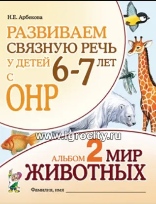 Развиваем связную речь у детей 6-7 лет с ОНР. Альбом 2. Мир животных, Арбекова Н.Е.