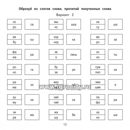 В пособии собраны упражнения для закрепления чтения слогов, составления слов из слогов и деления слов на слоги.