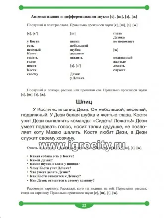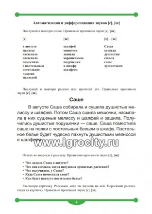 В тетради представлены тексты и картинки к ним для автоматизации и дифференциации свистящих и шипящих звуков. К каждому рассказу даны слова, произношение которых необходимо отработать до начала работы над текстом. Рассматривание картинки к тексту тоже предполагает работу по автоматизации и дифференциации звуков. Рассматривая картинку, ребенок рассказывает, что изображено на ней, и правильно произносит свистящие и шипящие звуки. Завершает работу над текстом пересказ с опорой на картинку. Для читающих детей добавляется такой вид работы, как автоматизация и дифференциация звуков при чтении текста. Рекомендована учителям-логопедам ДОО и школьных логопедических пунктов, воспитателям ДОО, родителям дошкольников.