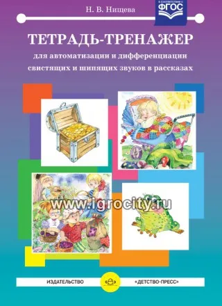 Тетрадь-тренажер для автоматизации и дифференциации свистящих и шипящих звуков в рассказах, Н.В. Нищева