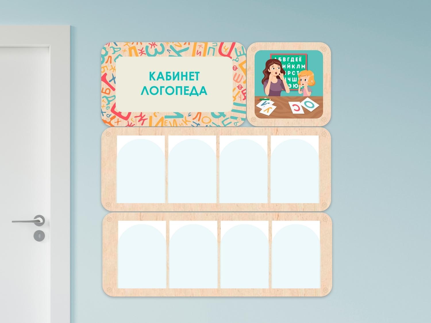 Стенд информации для детского сада, который рассказывает детям и родителям важные сведения касающиеся работы логопеда. В акриловых карманах можно разместить часы приёма, новости, правила и многое другое. Яркий заголовок акцентирует внимание посетителей на этой информации.